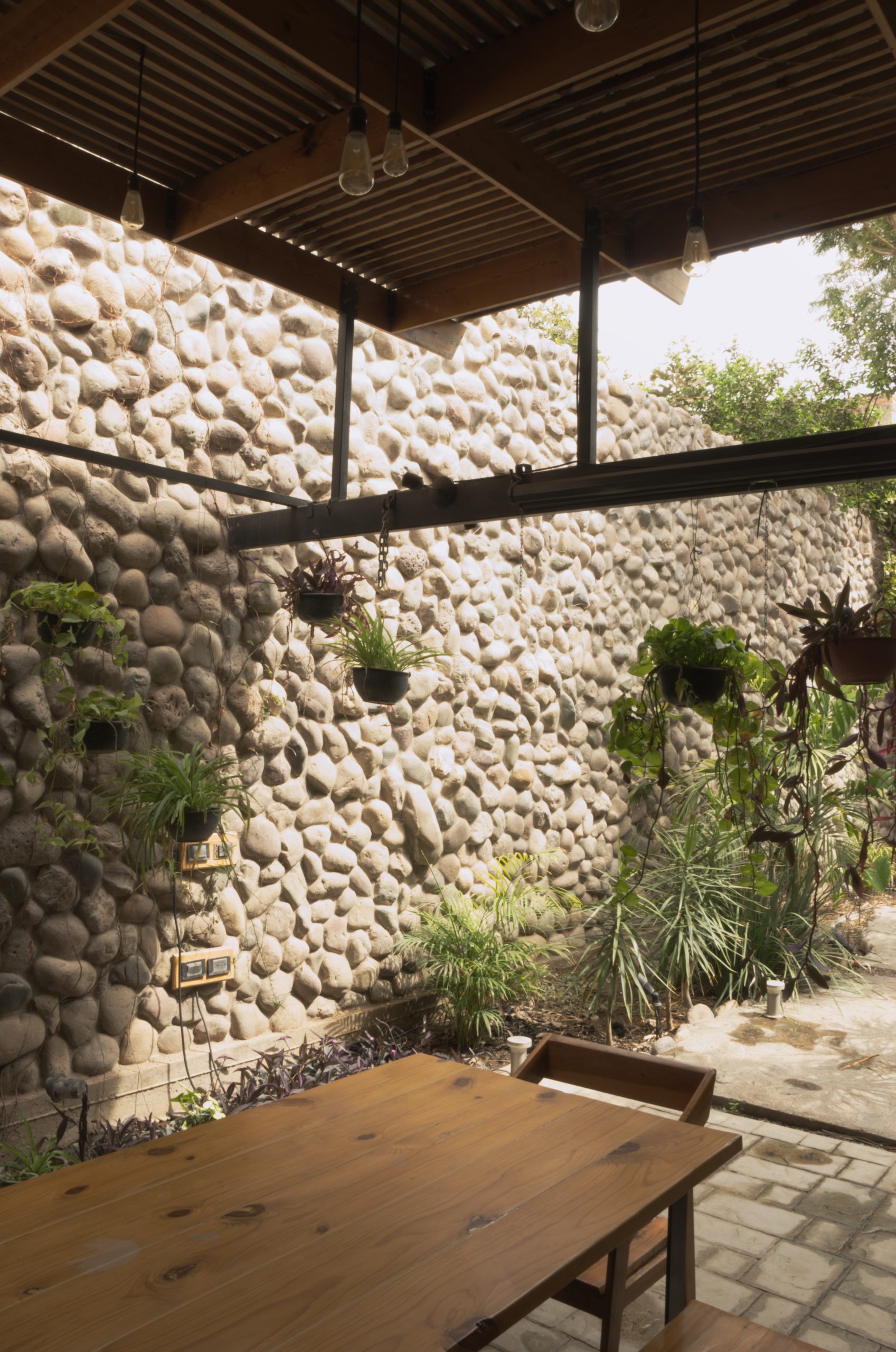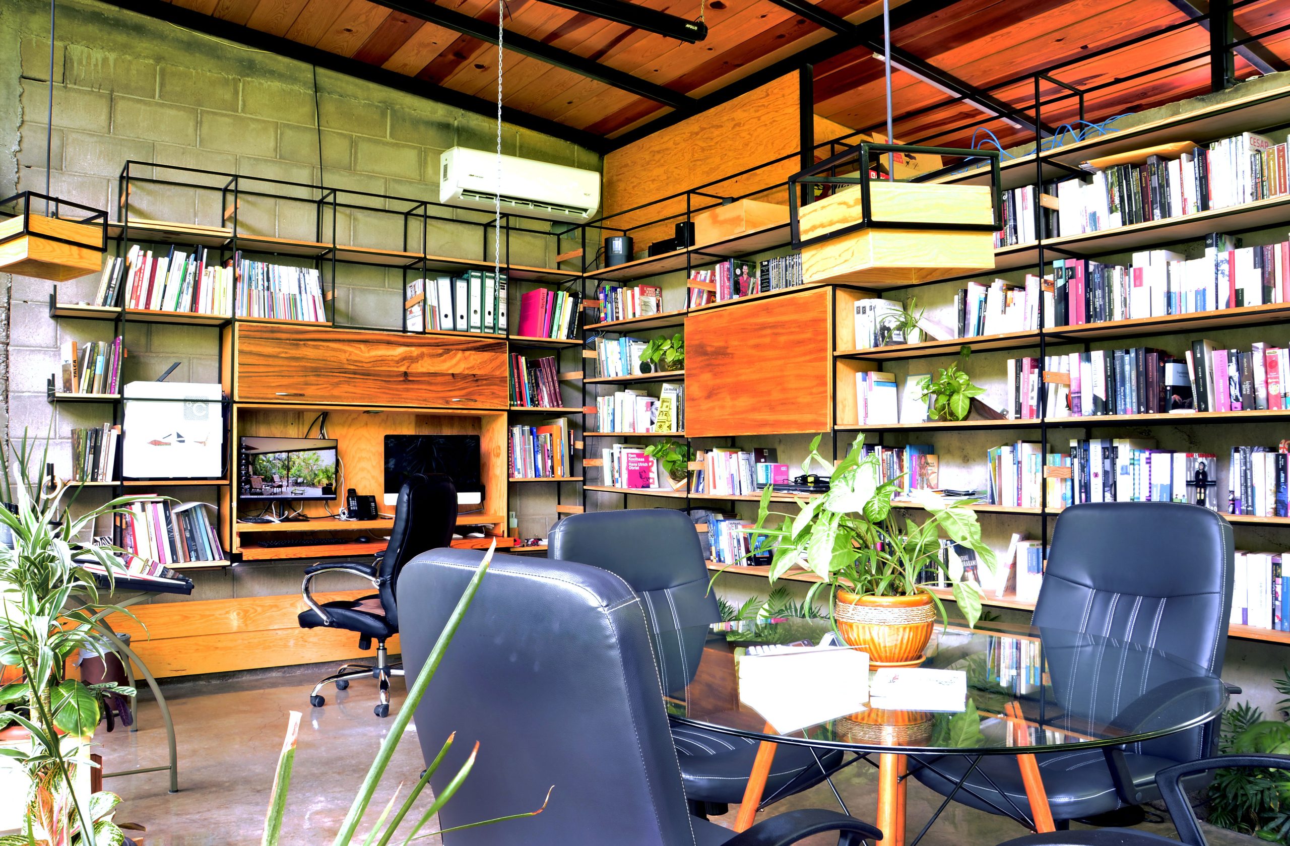 La combinación de sistemas constructivos incluye acero, concreto, tabique rojo, block gris, madera de pino y cristal, materiales que se integran en una propuesta arquitectónica eficiente y estética. Este enfoque garantiza no solo la durabilidad y el rendimiento del proyecto, sino también su conexión visual y sensorial con el entorno. La madera juega un papel fundamental en la escala vertical, cerrando los espacios y sirviendo como acabado final que aporta calidez al diseño. Laminas galvanizadas componen la cubierta, optimizada con una capa de poliuretano de 1 pulgada para reducir la transferencia de calor al interior, asegurando un ambiente confortable incluso en climas cálidos.