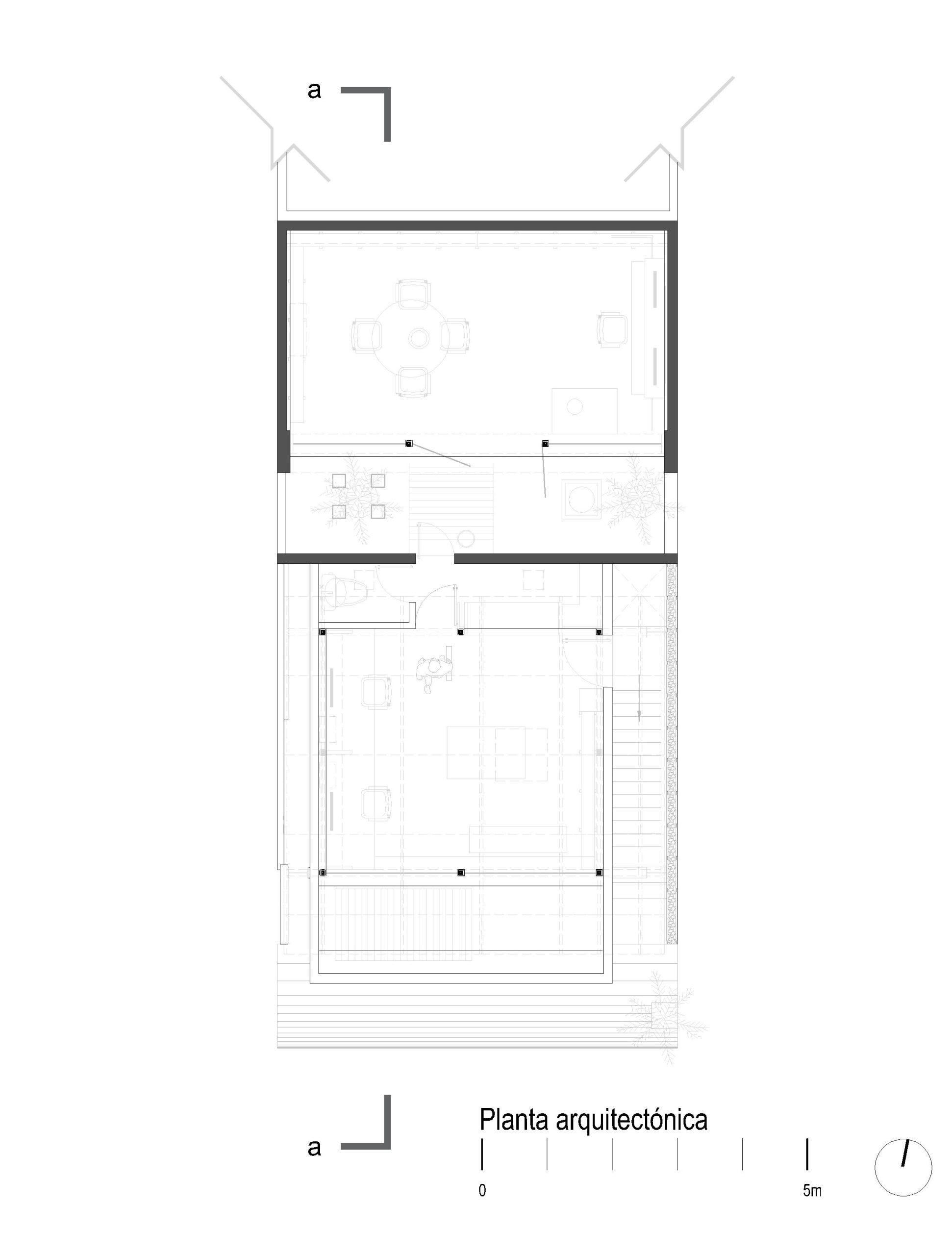 Las cubiertas de piedra, los muros de gavión y la integración de vegetación en terrazas y patios contribuyen al confort térmico y enriquecen la experiencia sensorial del espacio. El manejo de las alturas evita las visuales hacia las azoteas vecinas, creando un refugio introspectivo donde la luz natural, la sombra y el paisaje se integran en equilibrio con la arquitectura.